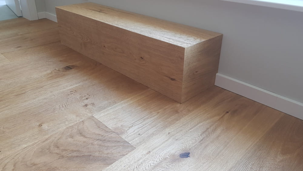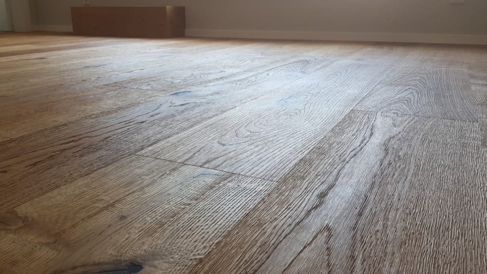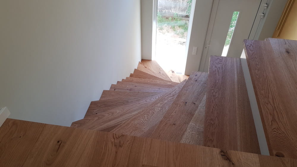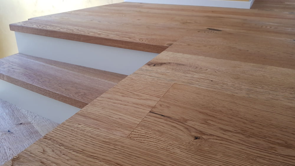 Startseite / Referenzen / Stark gebürstete Landhausdiele mit Treppenverkleidung