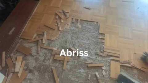 Start war der Abriss von Alt-Parkett und das Entfernen der Klebstoffreste auf dem Estrich mit Fräse. Wenn man das nicht machen würde, könnte es zu Haftungsproblemen kommen.