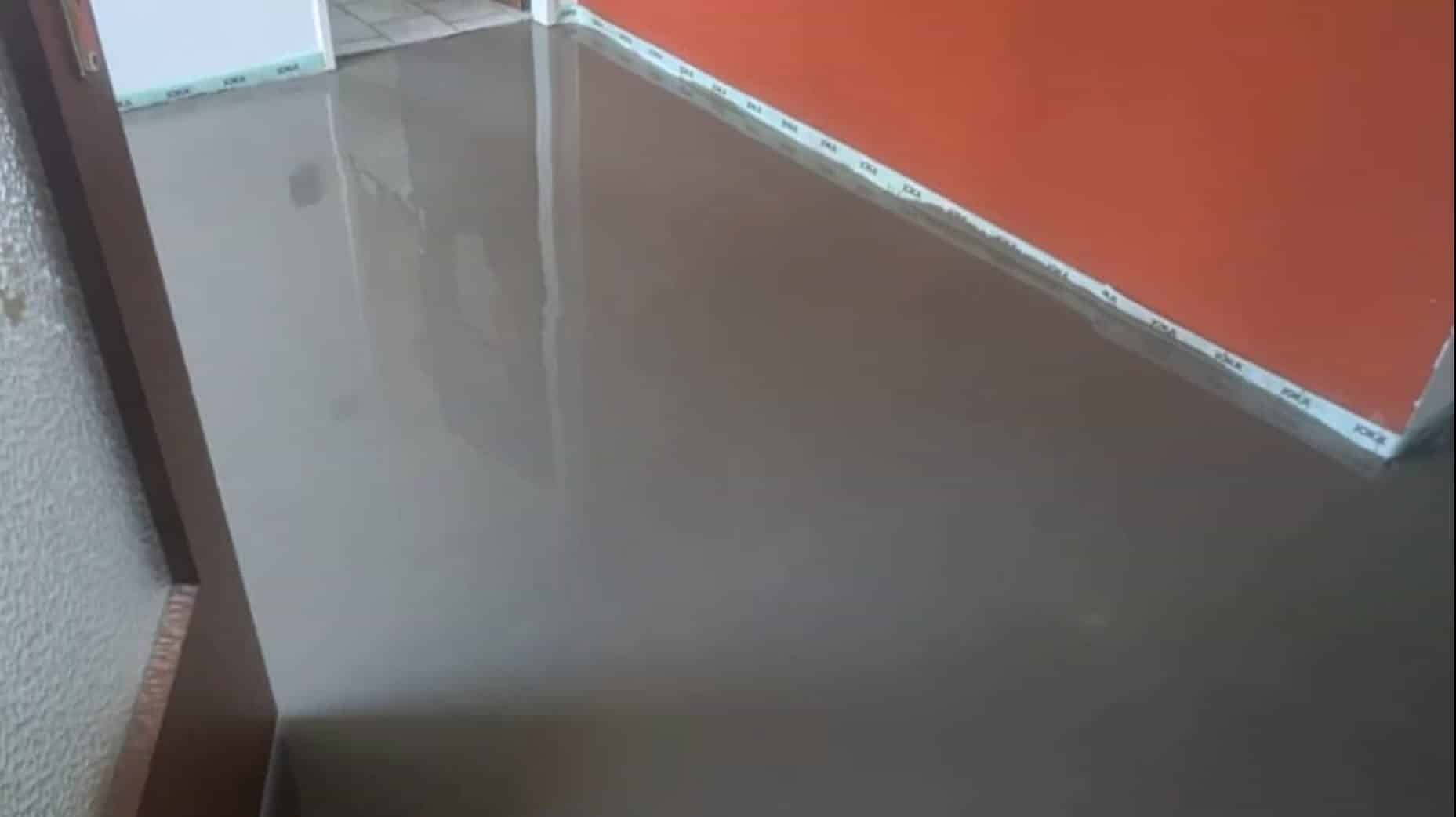 Als Nächstes den Untergrund grundieren und spachteln / Estrich zur Aufnahme von Parkett.