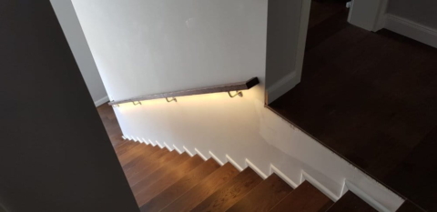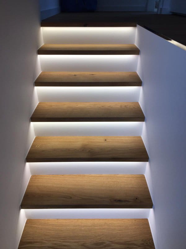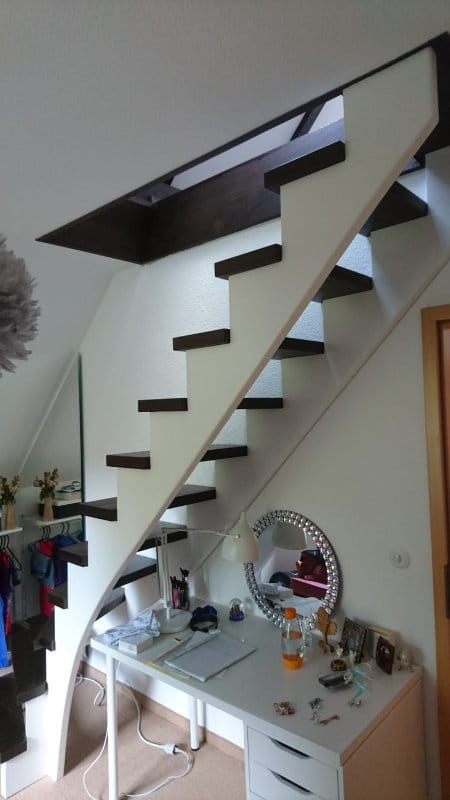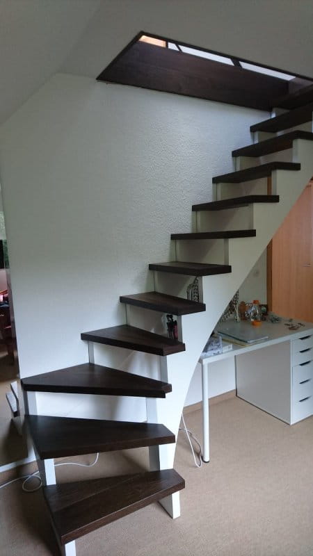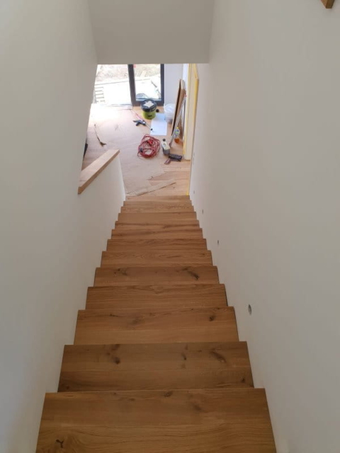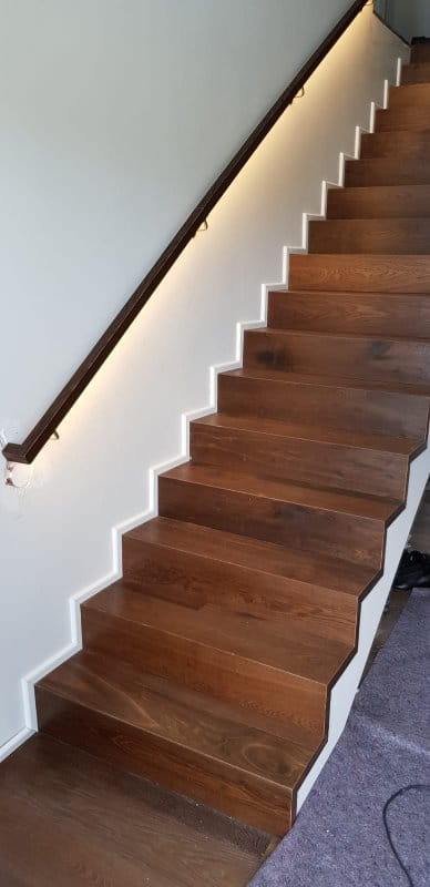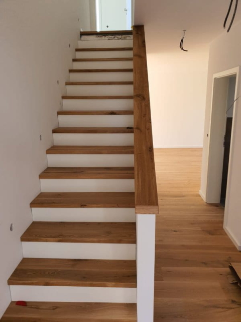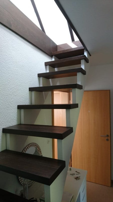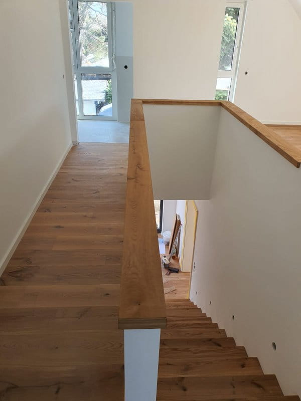 Individueller Treppenbau mit Treppenaugenverkleidung aus demselben Material. Auf Wunsch mit Beleuchtung und Handlauf und Brüstung aus dem selben Material.