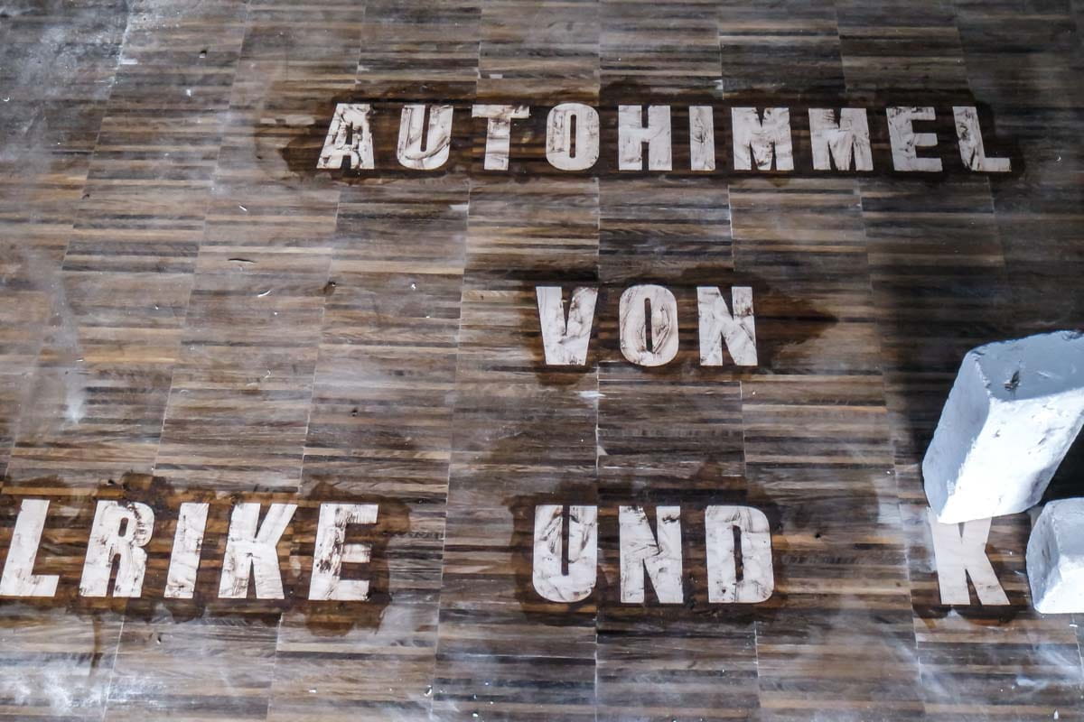 Räuchereiche Hochkantlamellen, Schrift aus kanadischen Ahorn-Dickten