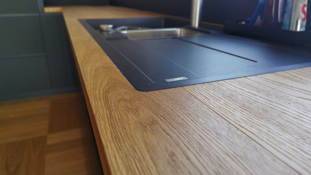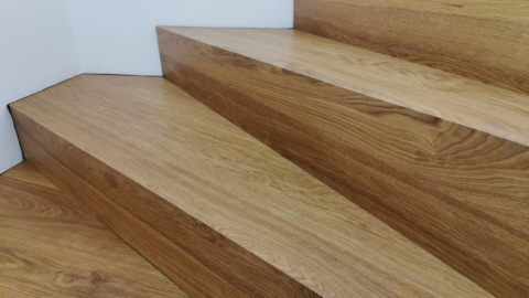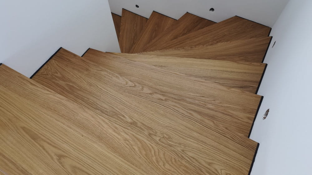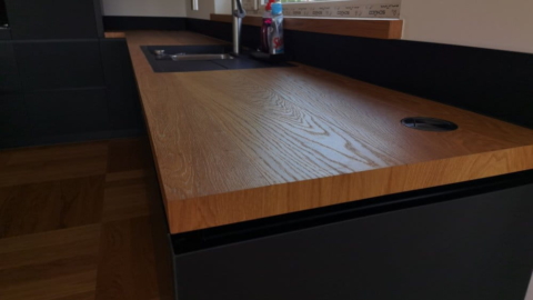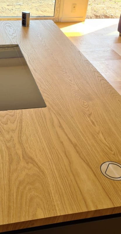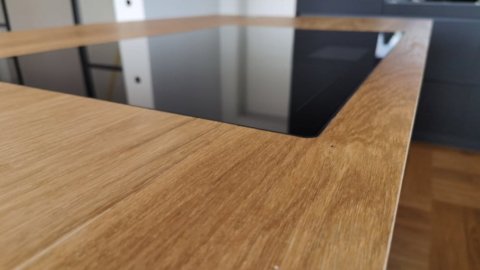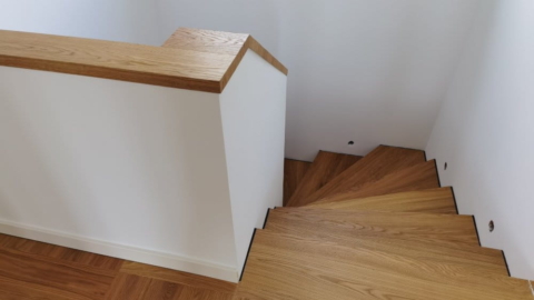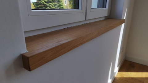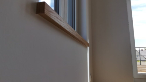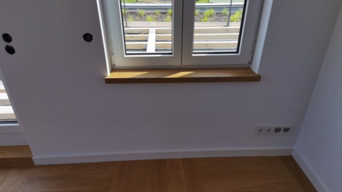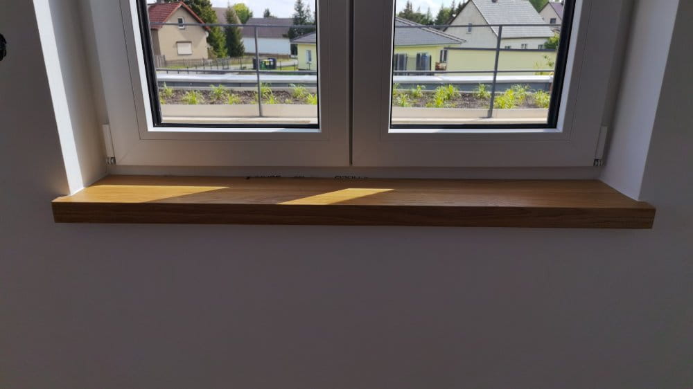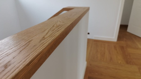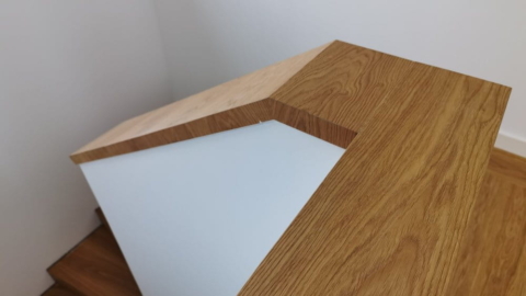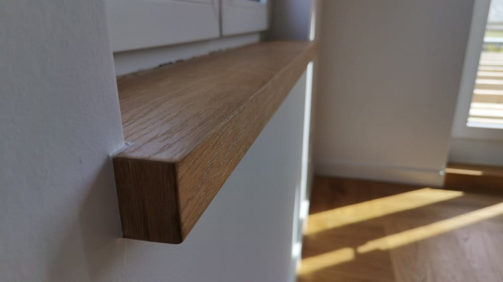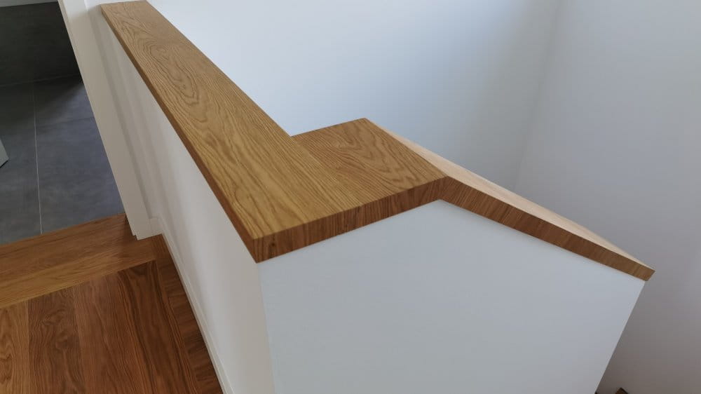 Aus diesem Material wurde ebenso die Treppe mit Brüstung und auch die Fensterbretter und Austritte hergestellt bzw. verkleidet und auf Gehrung sauber geschnitten.
